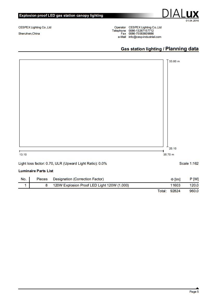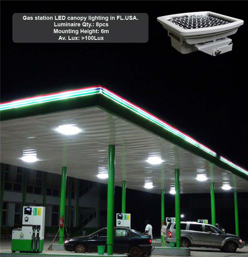 加油站爆炸危险区域外的照明装置可以是非防爆灯。 但应使用遮阳篷下非爆炸危险区域的灯具,防护等级不低于IP44的照明灯具。