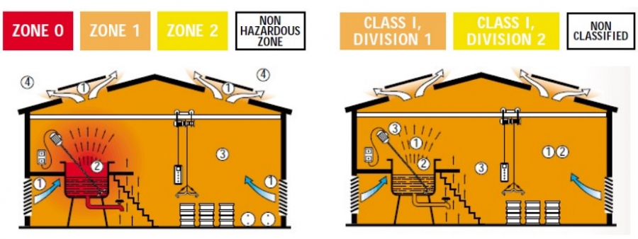因此,根据爆炸环境发生的频率和持续时间,将危险场所划分为不同的区域,对设备的防爆等级要求也不同。根据危险程度的不同(持续危险/间歇危险/异常情况下的危险),划分为危险区出来的级别(0区/1/2区;20/21/22区;1区/2区) )。